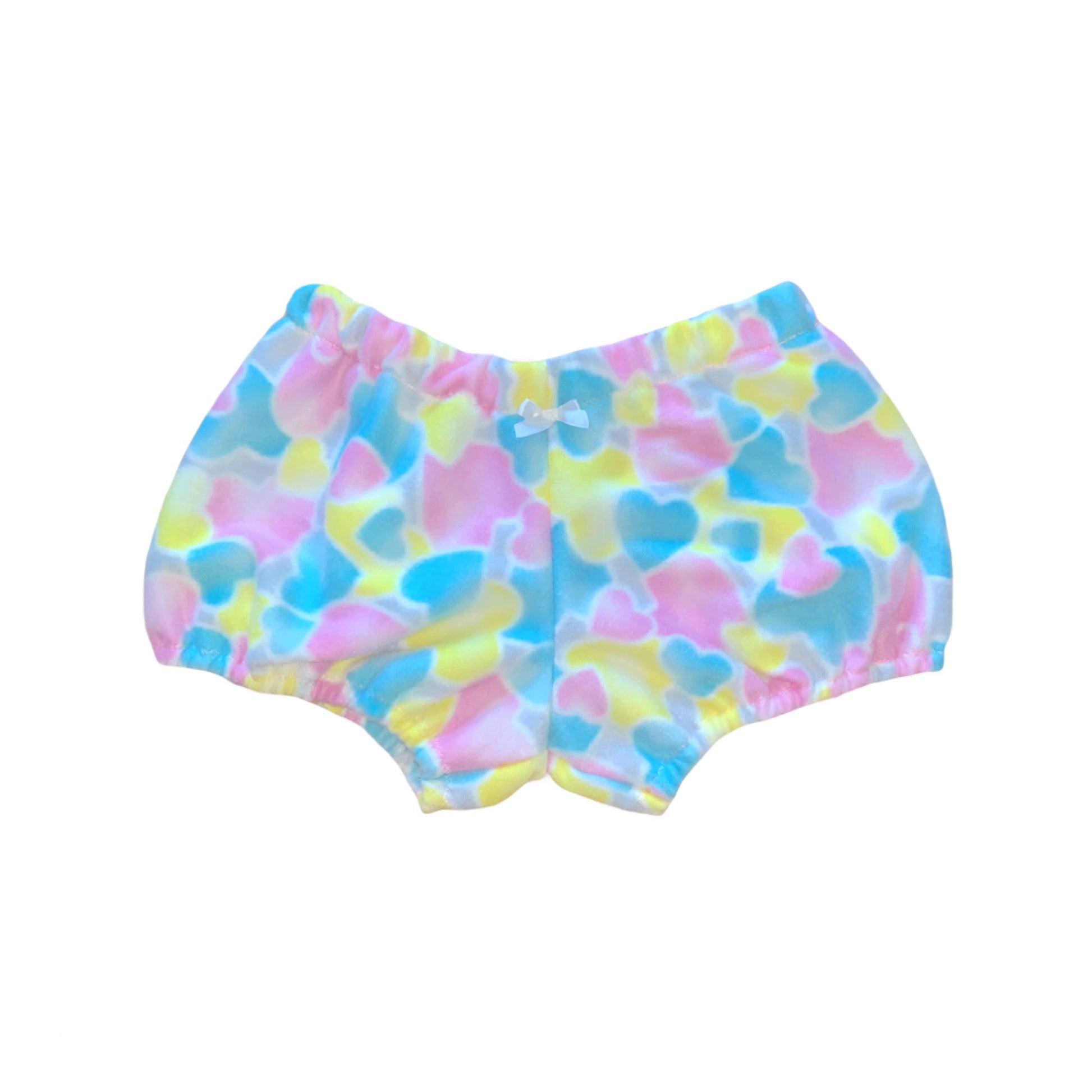 the candy hearts bloomers are made with soft plush fabric and stretchy waistband for purrfect comfort 🎀 add some pastel to your wardrobe with these babies xx
