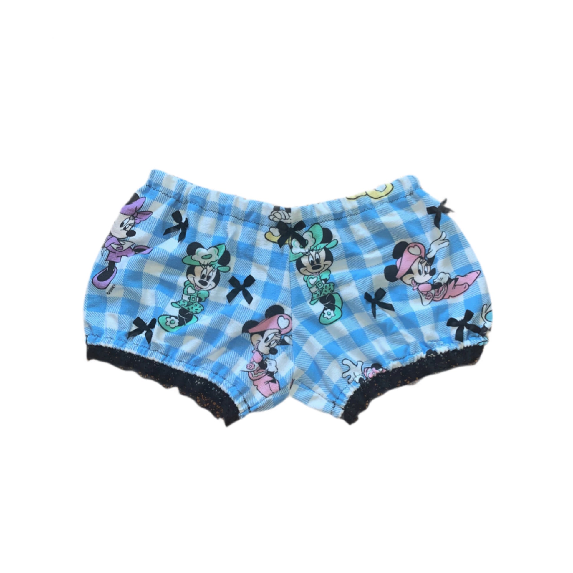 minnie bloomers made from thin soft fabric, perfect for summer! With black bows and black lace around the legs these shorts are sure to make anyone smile 😊