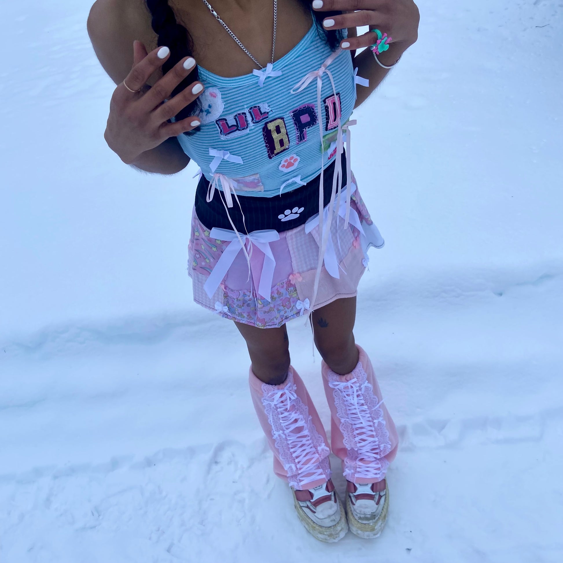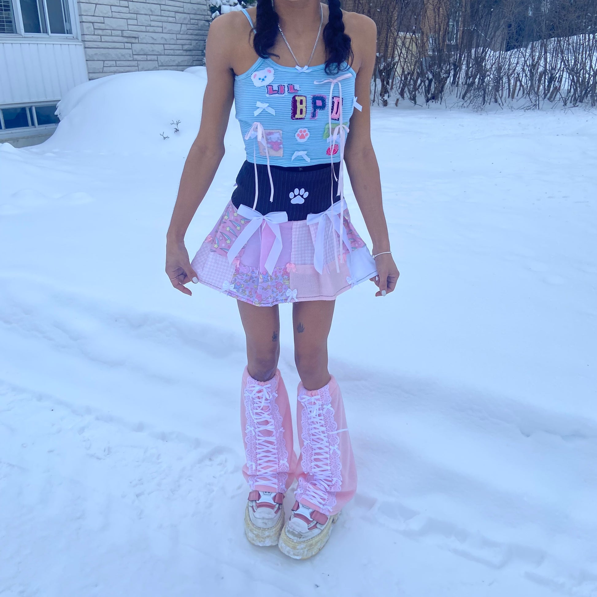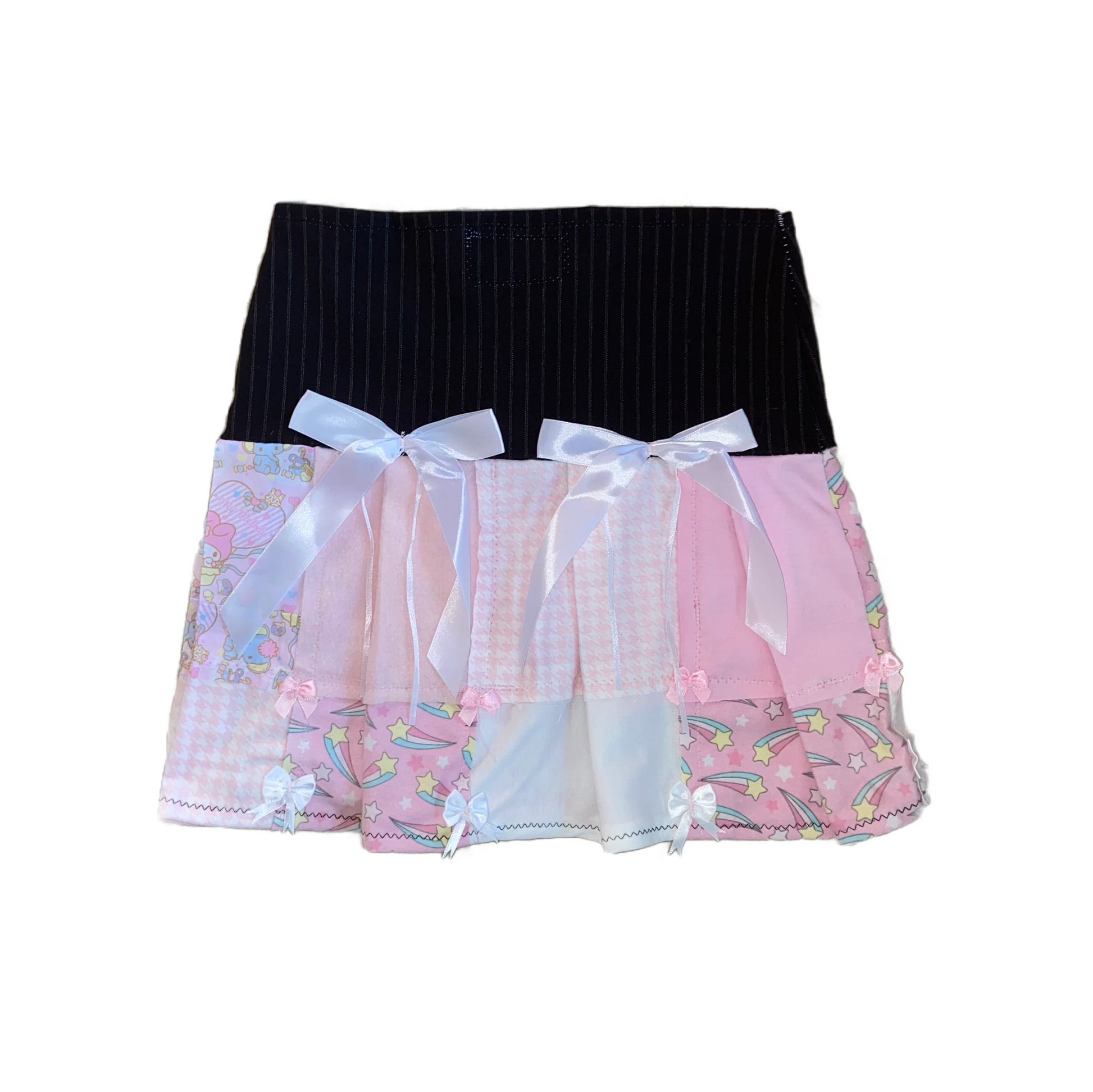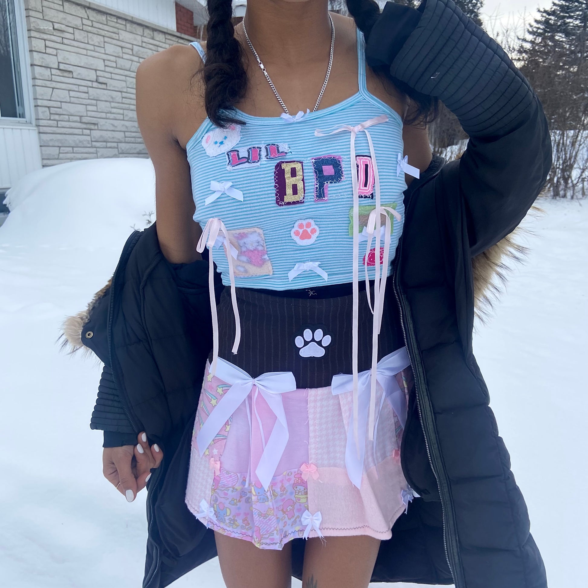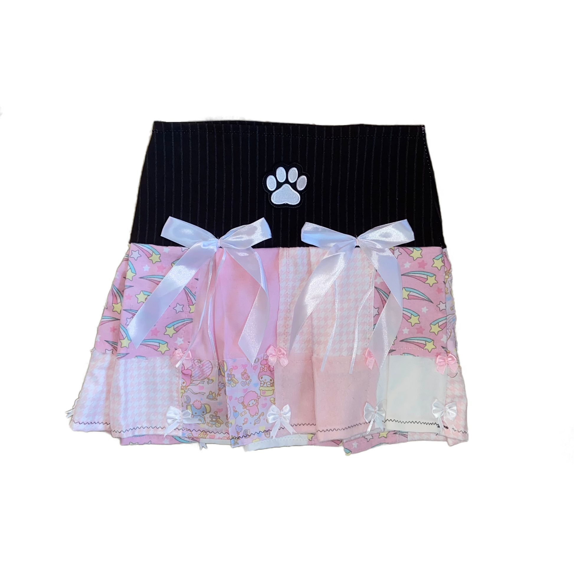 upgrade your wardrobe with our adorable pawgirl pinstripe skirt! Handmade with care, this cute skirt features a one-of-a-kind patchwork design. Perfect for any occasion, it's sure to make a statement while keeping you stylish and comfortable 🎀